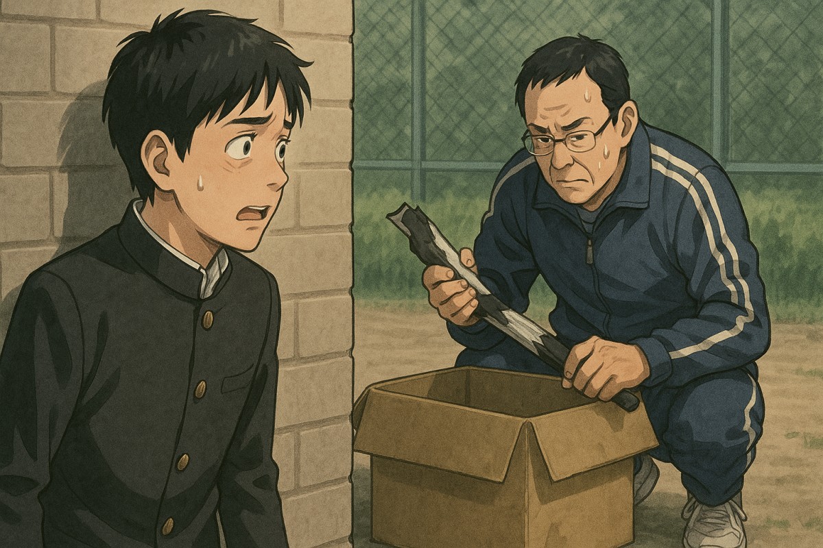 しかし、事件の翌日。 遥斗は偶然、部室の裏で顧問の先生・猫藤が破損した備品を隠すように処理している姿を目撃する。 さらに、猫藤が学校予算の不正使用を隠すため、Aに罪をかぶせようとしていた証拠まで見つけてしまう。